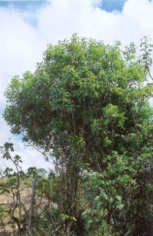 Detalhe da rebrota da planta Burra Leiteira, depois de ter recebido a poda de galhos.