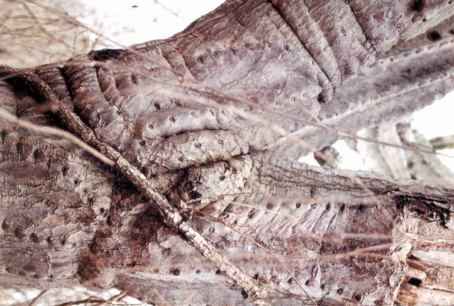 Detalhe da casca do tronco com espinhos da planta mandacaru.