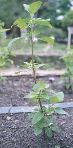 Detalhe do ramo com folhas da planta Mentrasto.