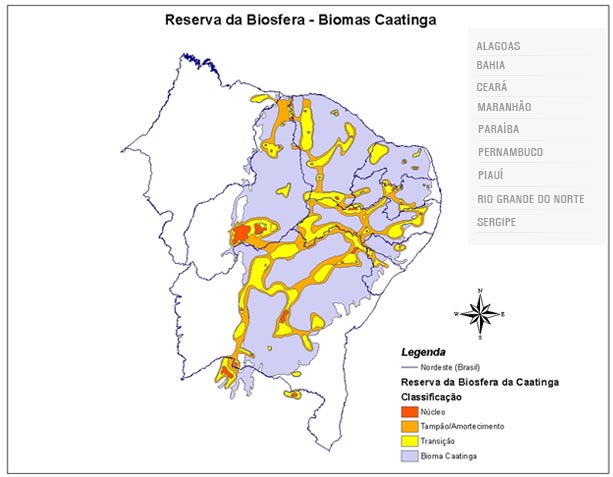 A Reserva da Biosfera da Caatinga foi criada em 2001 envolvendo 10 estados do Nordeste e abrangendo uma área de 189.990 km2.